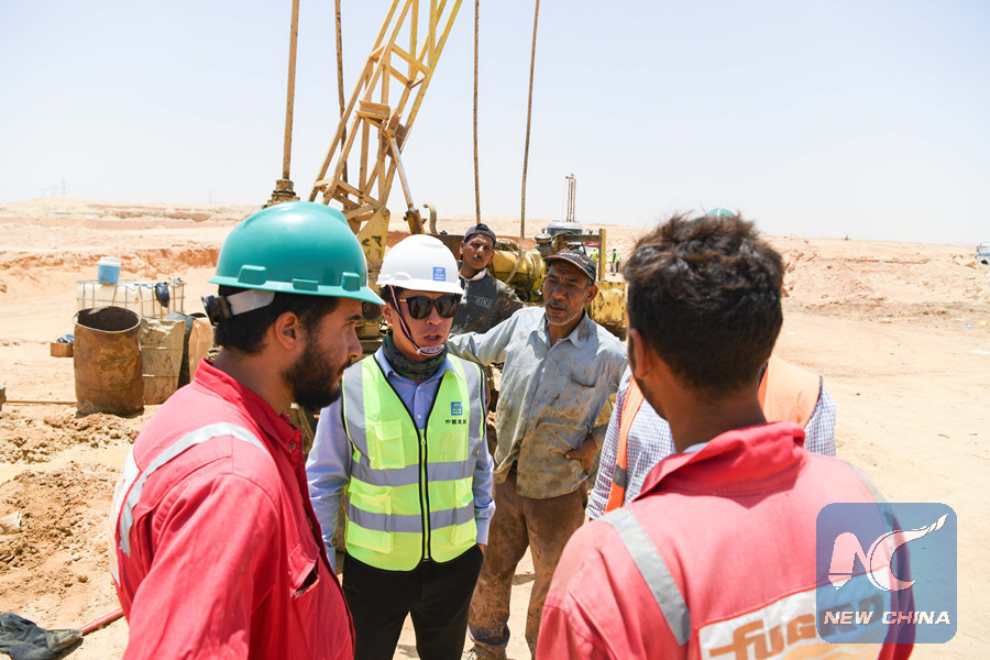 CAIRO, July 9 (Xinhua) -- Some 50 km east of the capital Cairo, the construction of the Central Business District (CBD) undertaken by China State Construction Engineering Corporation (CSCEC) in Egypt's new administrative capital is carrying on under the scorching sun.