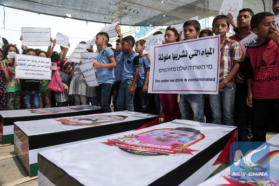 GAZA, July 24 (Xinhua) -- Hundreds of Palestinian children demonstrated on Tuesday in the northern Gaza Strip, demanding an end to the 11-year Israeli blockade on the Hamas-ruled territory.