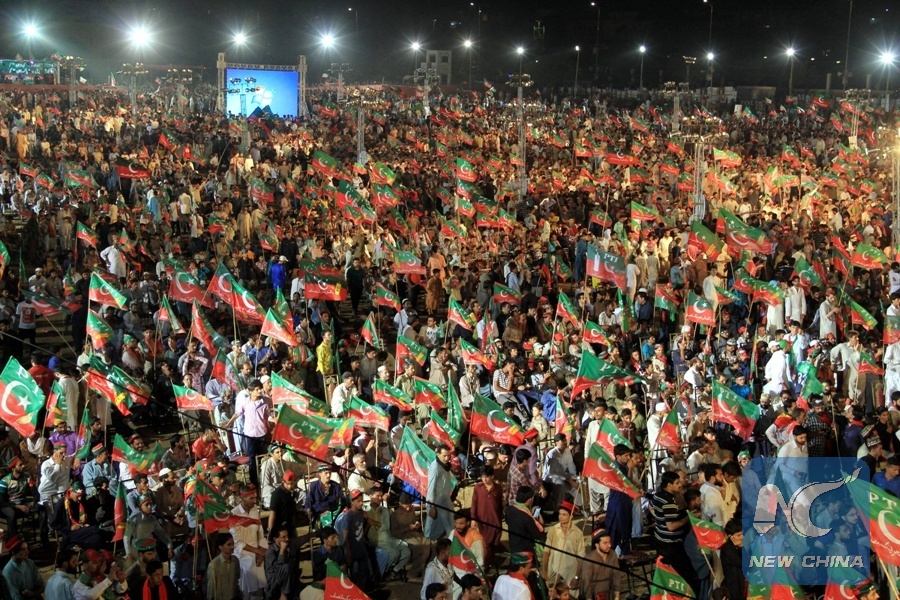 Supporters of Imran Khan, chief of the Pakistan Tehreek-e-Insaf (PTI) party, attend an election campaign rally in southern Pakistani port city of Karachi, July 22, 2018. (Xinhua Photo)