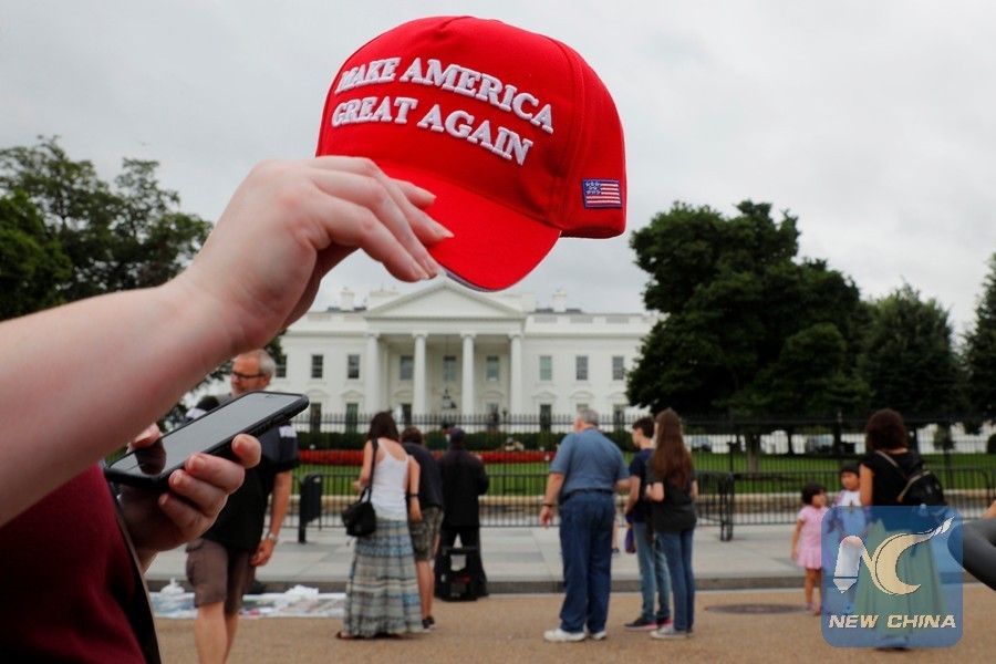 A tourist holds a "Make America Great Again" hat outside the White House in Washington, U.S., August 2, 2018. (Xinhua/REUTERS)