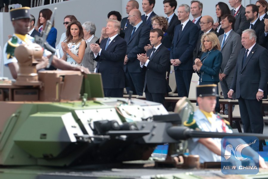 File photo taken on July 14, 2017 shows U.S. President Donald Trump and U.S. First Lady Melania Trump as they attend the annual Bastille Day military parade on the Champs-Elysees avenue in Paris. (Xinhua/AFP)