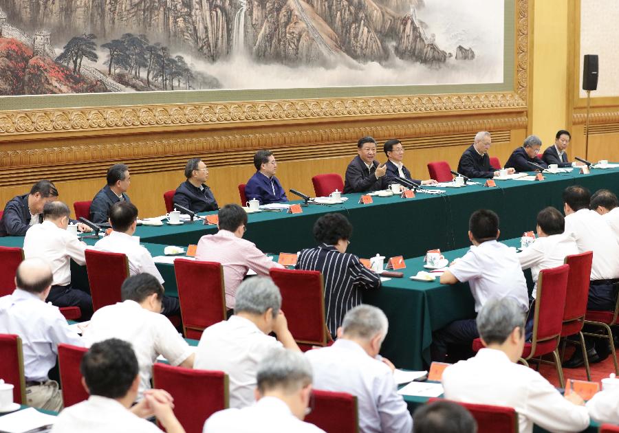Chinese President Xi Jinping (C, rear), also general secretary of the Communist Party of China (CPC) Central Committee and chairman of the Central Military Commission, addresses a symposium marking the fifth anniversary of the Belt and Road Initiative (BRI) in the Great Hall of the People in Beijing, capital of China, Aug. 27, 2018. (Xinhua/Huang Jingwen)