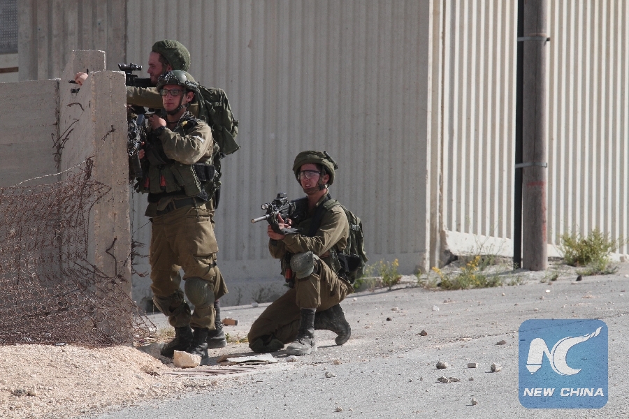 File Photo: Israeli soldiers take positon following clashes between Israeli settlers from the settlement of Yitzhar and Palestinians from the nearby Urif village, south of the West Bank City of Nablus, on Oct. 10, 2018. (Xinhua/Nidal Eshtayeh)