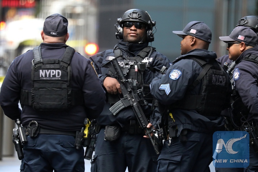 Members of the New York Police Department Counter Terrorism Squad are pictured outside the Time Warner Center in the Manhattan borough of New York City after a suspicious package was found inside the CNN Headquarters in New York, the United States, Oct. 24, 2018. (REUTERS Photo)