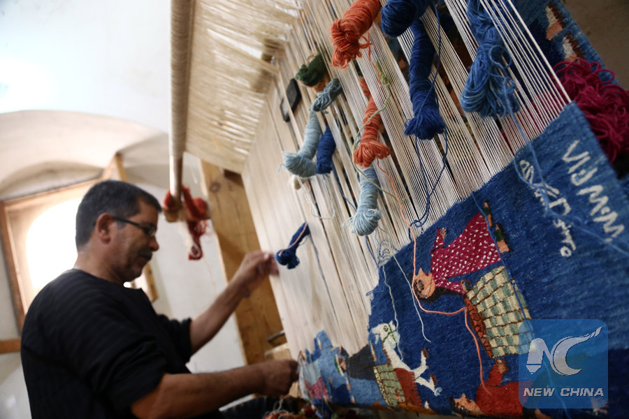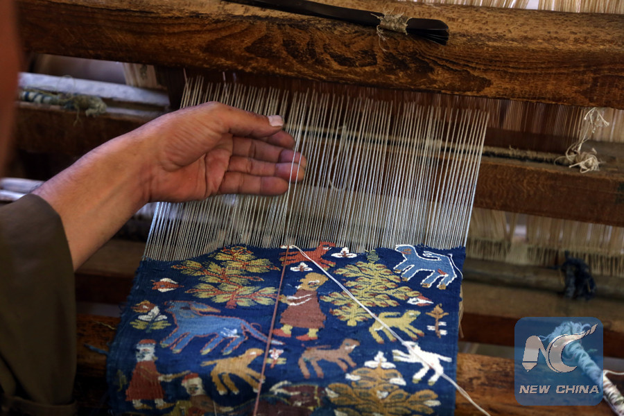 "I started working here since I was 9. So, I have been working here for more than 60 years now," Selim told Xinhua while holding threads of several colors and working on a tapestry on his large loom.