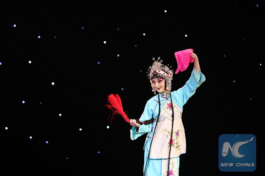 A Chinese artist performs during a joint performance by both Chinese and Vietnamese traditional stage artists in Vietnam's capital Hanoi, Dec.13, 2018. (Xinhua/Wang Di)