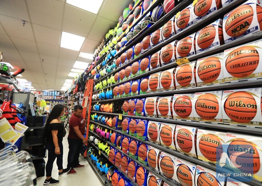 Customers shop at a sporting goods store in Alhambra, Los Angeles County, the United States, Aug. 1, 2018. (Xinhua/Li Ying)