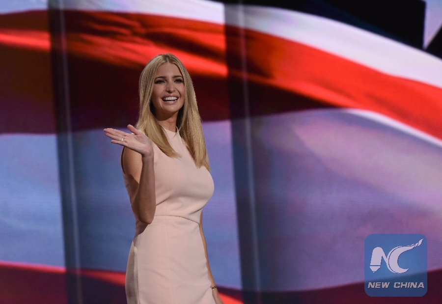 File Photo: Ivanka Trump, daughter of Republican presidential nominee Donald Trump, takes the stage on the last day of the Republican National Convention in Cleveland, Ohio, the United States, July 21, 2016. (Xinhua/Yin Bogu)