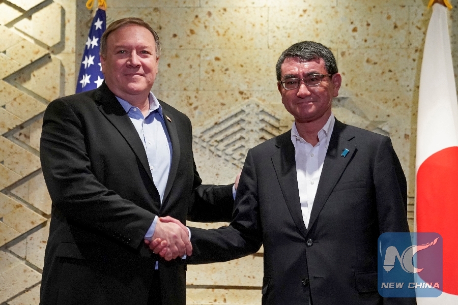 File Photo: U.S. Secretary of State Mike Pompeo shakes hands with Japan's Foreign Minister Taro Kono before a breakfast meeting in Tokyo, Japan, July 8, 2018. (Xinhua/Reuters)