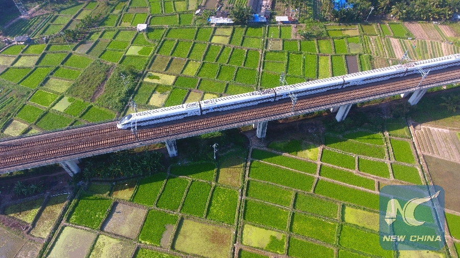 File Photo: A bullet train runs in Qionghai City, south China's Hainan Province, Jan. 18, 2018. (Xinhua/Meng Zhongde)