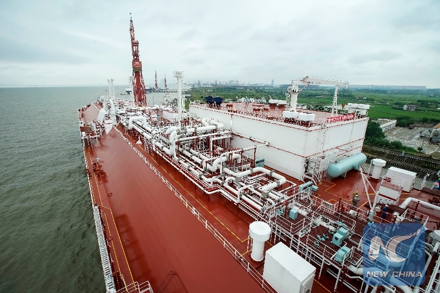 Photo taken on July 5, 2018 shows a ship of PULNG project at Hudong-Zhonghua Shipbuilding (Group) Co., Ltd. in east China's Shanghai. This year marks the 40th anniversary of China's reform and opening-up policy. (Xinhua/Shen Bohan)