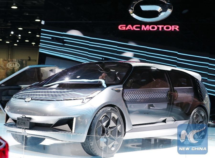 Photo taken on Jan. 15, 2019 shows a GAC Motor's concept vehicle Entranze at the 2019 North American International Auto Show (NAIAS) in Detroit, the United States. (Xinhua/Wang Ping)