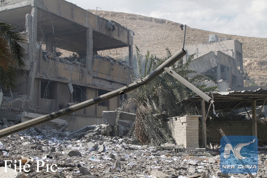 Photo taken on April 14, 2018 shows relics of the Scientific Research Center in the Barzeh neigborhood of northeast of Damascus, after the United States, Britain and France carried out a wave of joint airstrikes on Syrian military facilities. (Xinhua File photo)