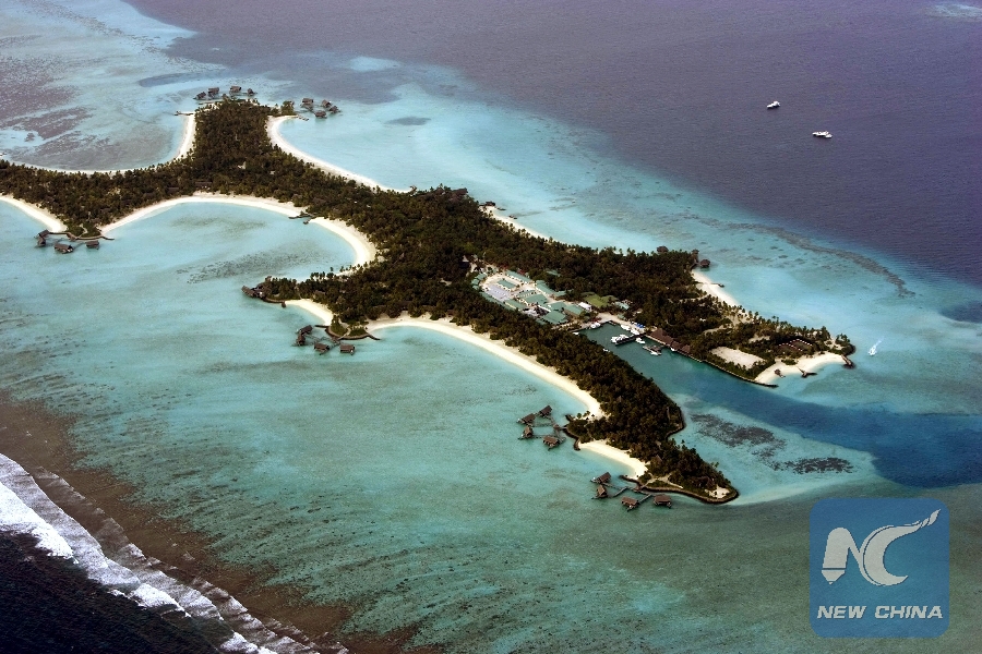 The aerial photo taken on Sept. 8, 2009 shows an island of Maldives. (Xinhua/Chen Zhanjie)