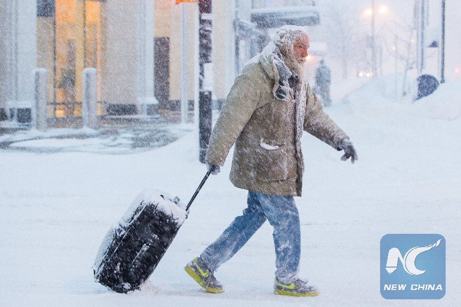 NEW YORK, Jan. 30 (Xinhua) -- The freezing weather caused by the polar vortex in the midwest United States expanded to New York on Wednesday with snowfalls and strong wind gusts, sending temperatures to the single digits Fahrenheit, or below -12 degrees Celsius.