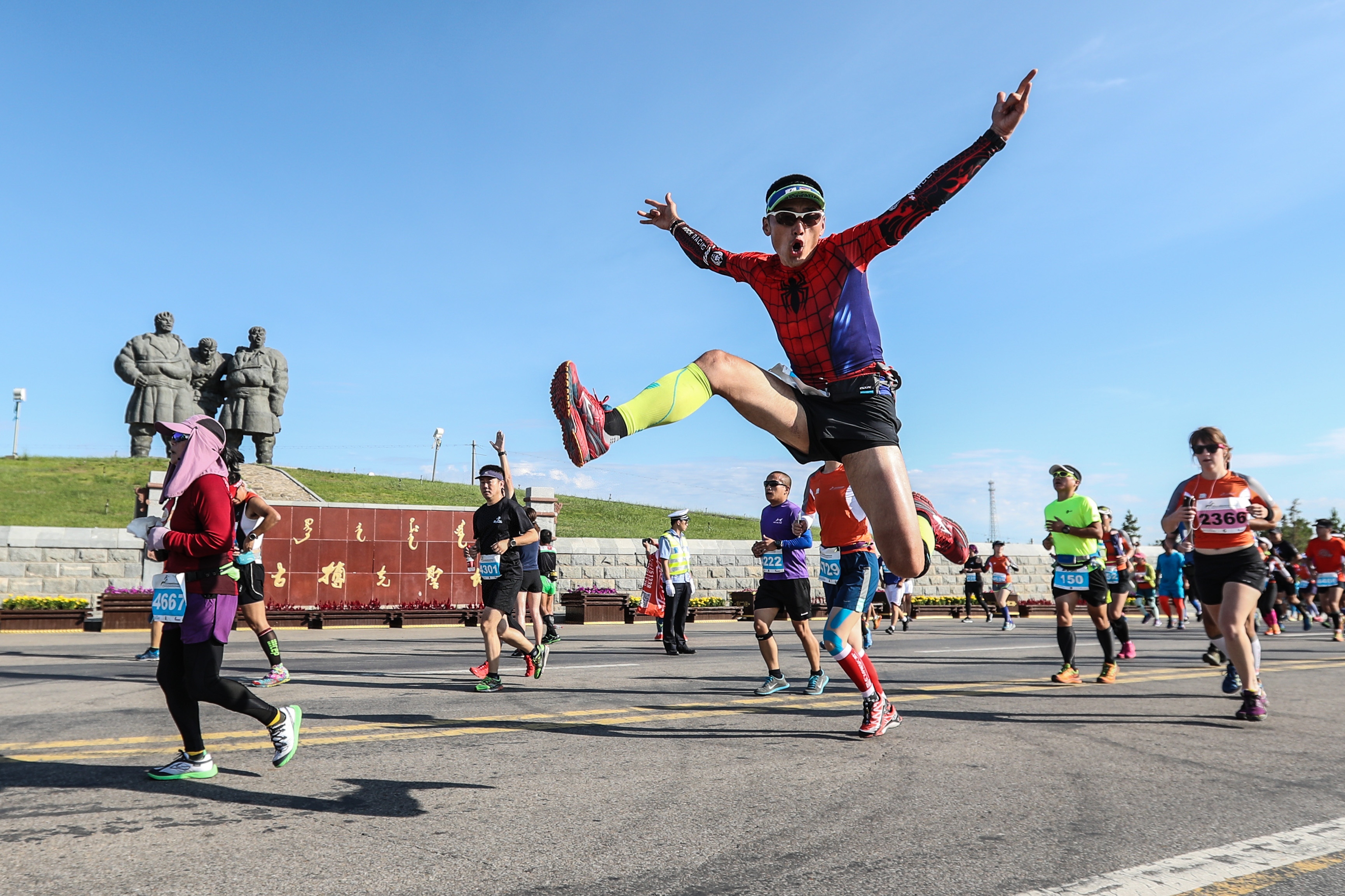 Pan Lihui of China runs during the men's full marathon competition of the 9th Grassland Extreme Marathon in West Ujimqin Banner in north China's Inner Mongolia Autonomous Region, July 2, 2016. (Xinhua/Zheng Huansong)