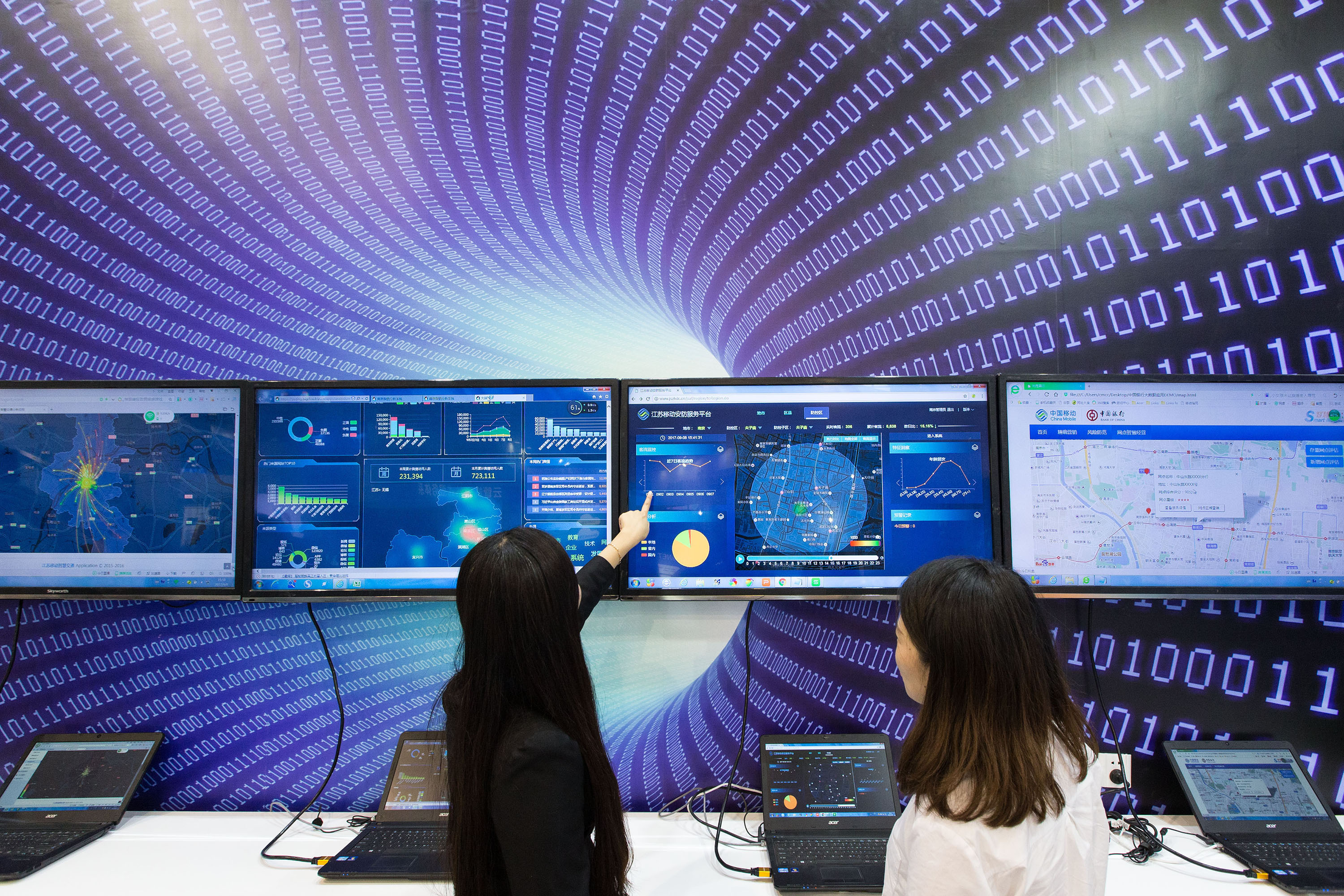 People visit a software product and information service trade fair in Nanjing, east China's Jiangsu Province, Sept. 8, 2017. (Xinhua/Su Yang)