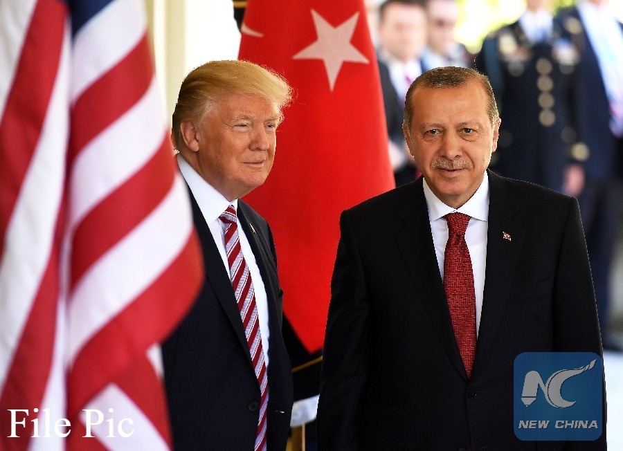 U.S. President Donald Trump (L) welcomes his Turkish counterpart Recep Tayyip Erdogan (R) at the White House in Washington, United States, on May 16, 2017. (Xinhua File photo)