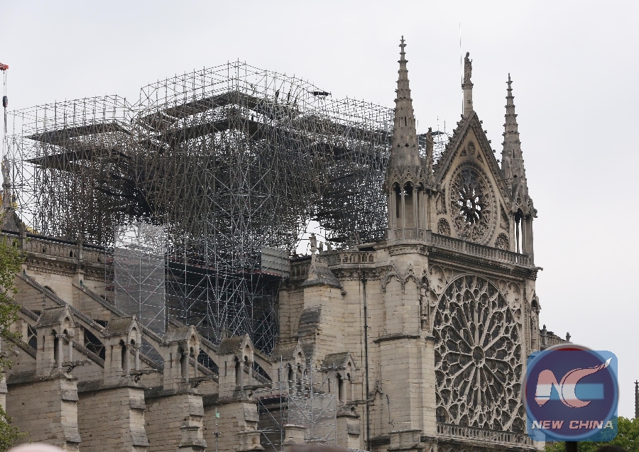 Photo taken on April 16, 2019 shows the damaged Notre Dame Cathedral after a fire in Paris, France. (Xinhua/Gao Jing)