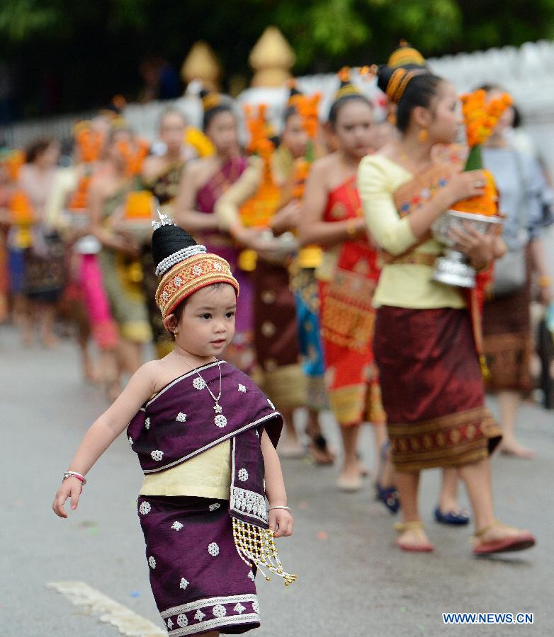 A girl dressed in traditional costume is seen in Luang Prabang, Laos, April 15, 2018. China will hold the Conference on Dialogue of Asian Civilizations starting from May 15. Under the theme of "exchanges and mutual learning among Asian civilizations and a community with a shared future," the conference includes an opening ceremony and sub-forums. (Xinhua/Liu Ailun)