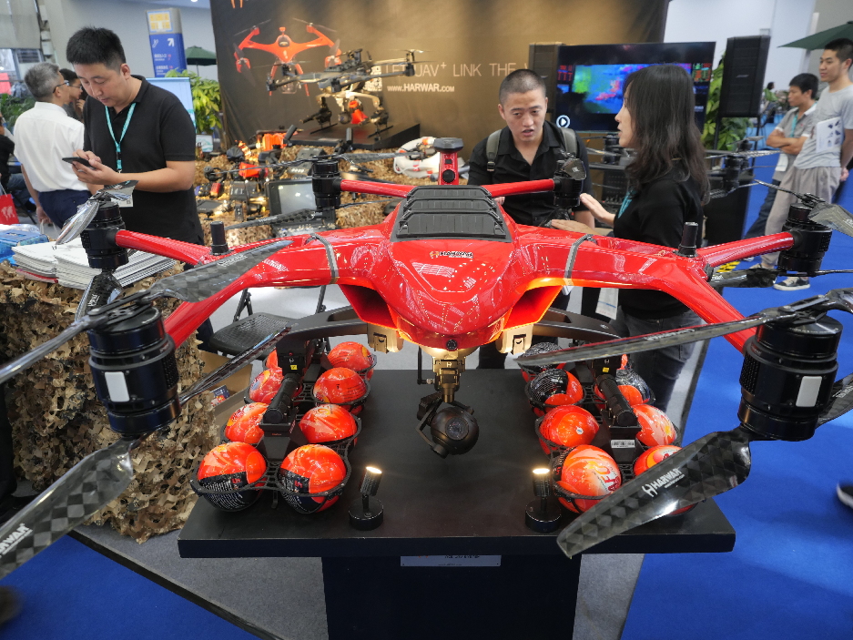 People visit the 4th Shenzhen International UAV Expo in south China's Guangdong Province, June 20, 2019. (Xinhua/Wang Feng)