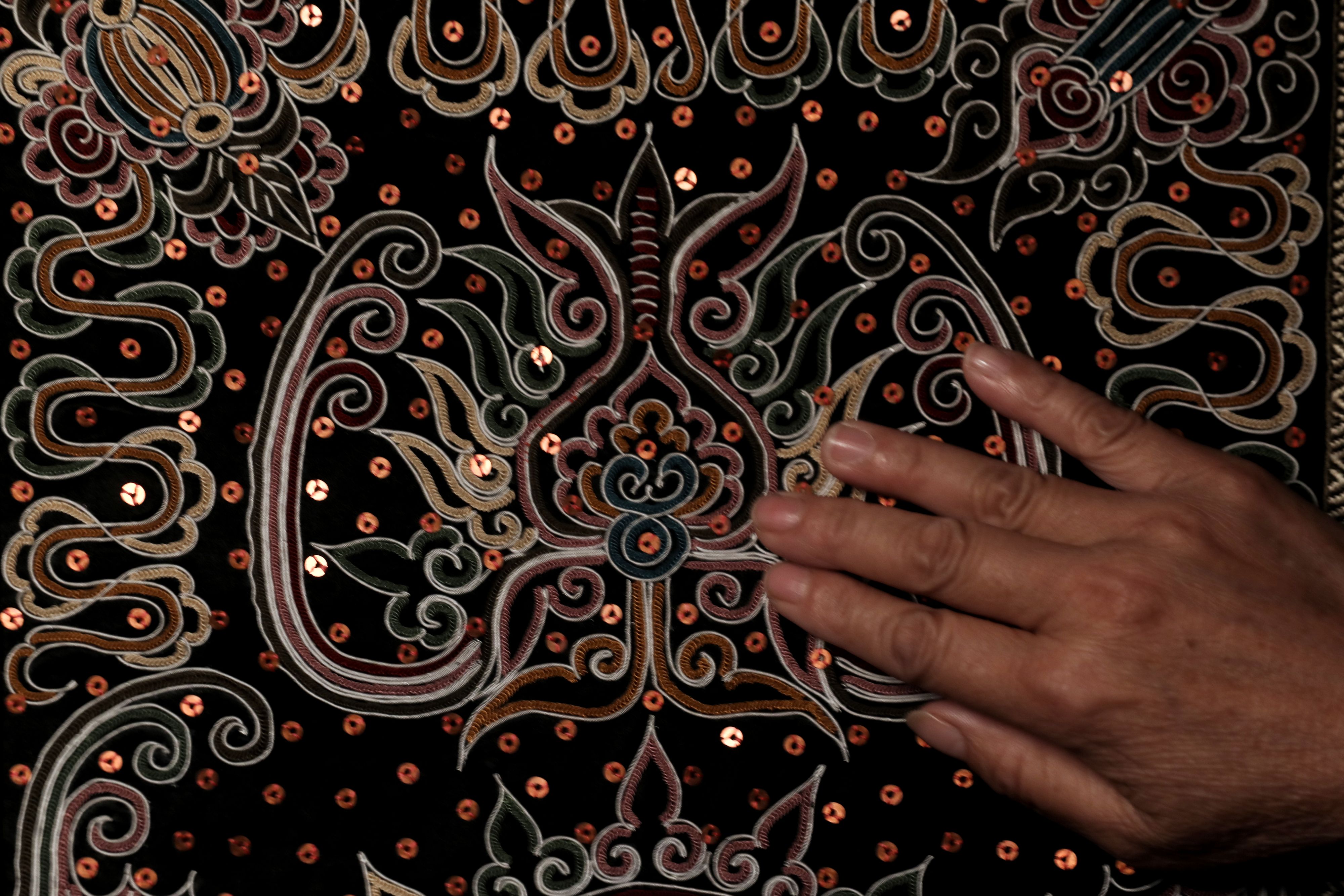 Using these unique prefabricated threads, embroiderers start their needlework by outlining sketches on fabrics.