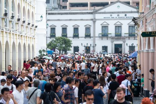 Tourists visit the Senado Square in south China's Macao, May 1, 2019. (Xinhua/Cheong Kam Ka)
