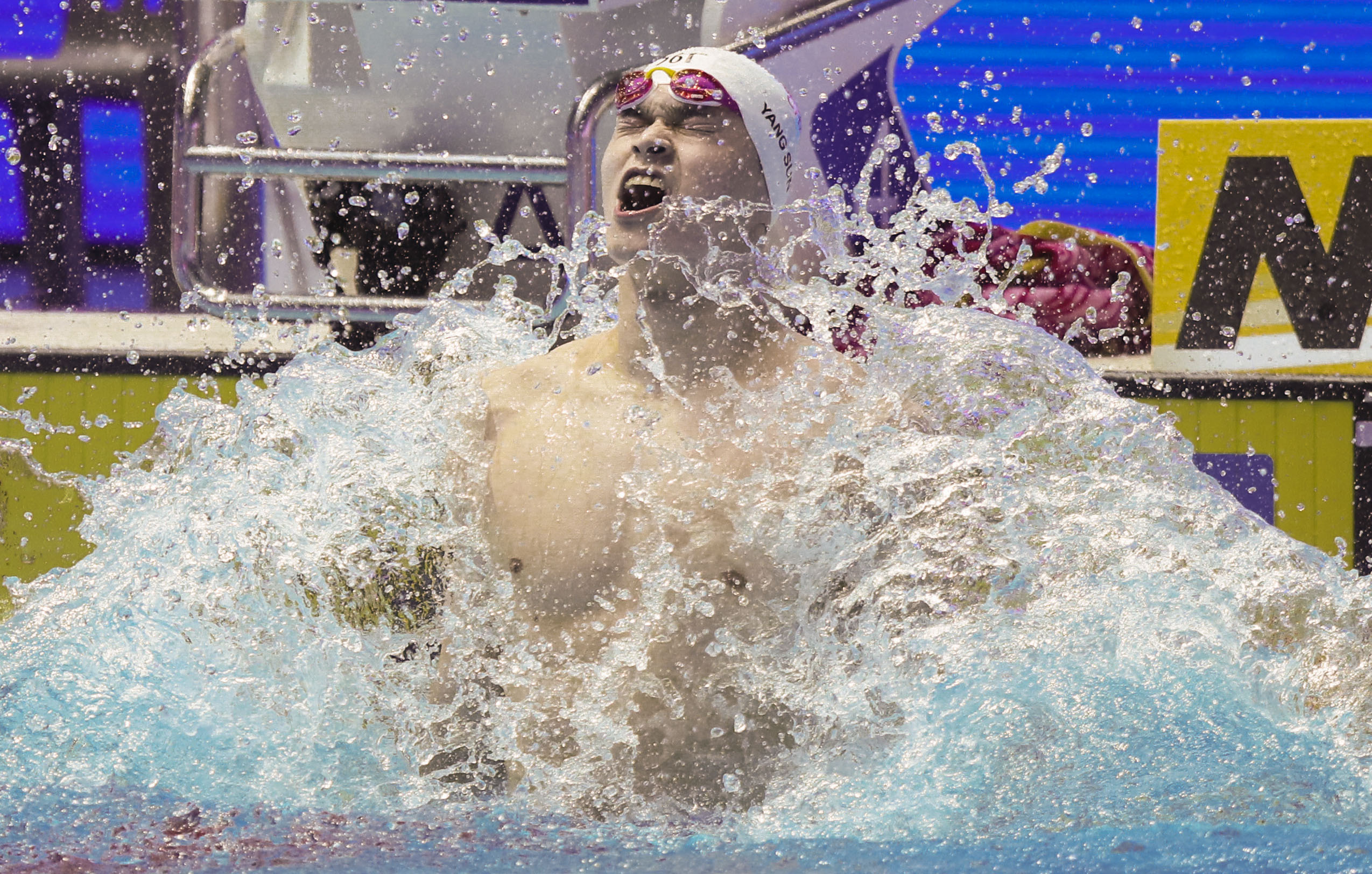Sun Yang of China reacts after the men's 400m freestyle final at the Gwangju 2019 FINA World Championships in Gwangju, South Korea, on July 21, 2019. (Xinhua/Bai Xuefei)