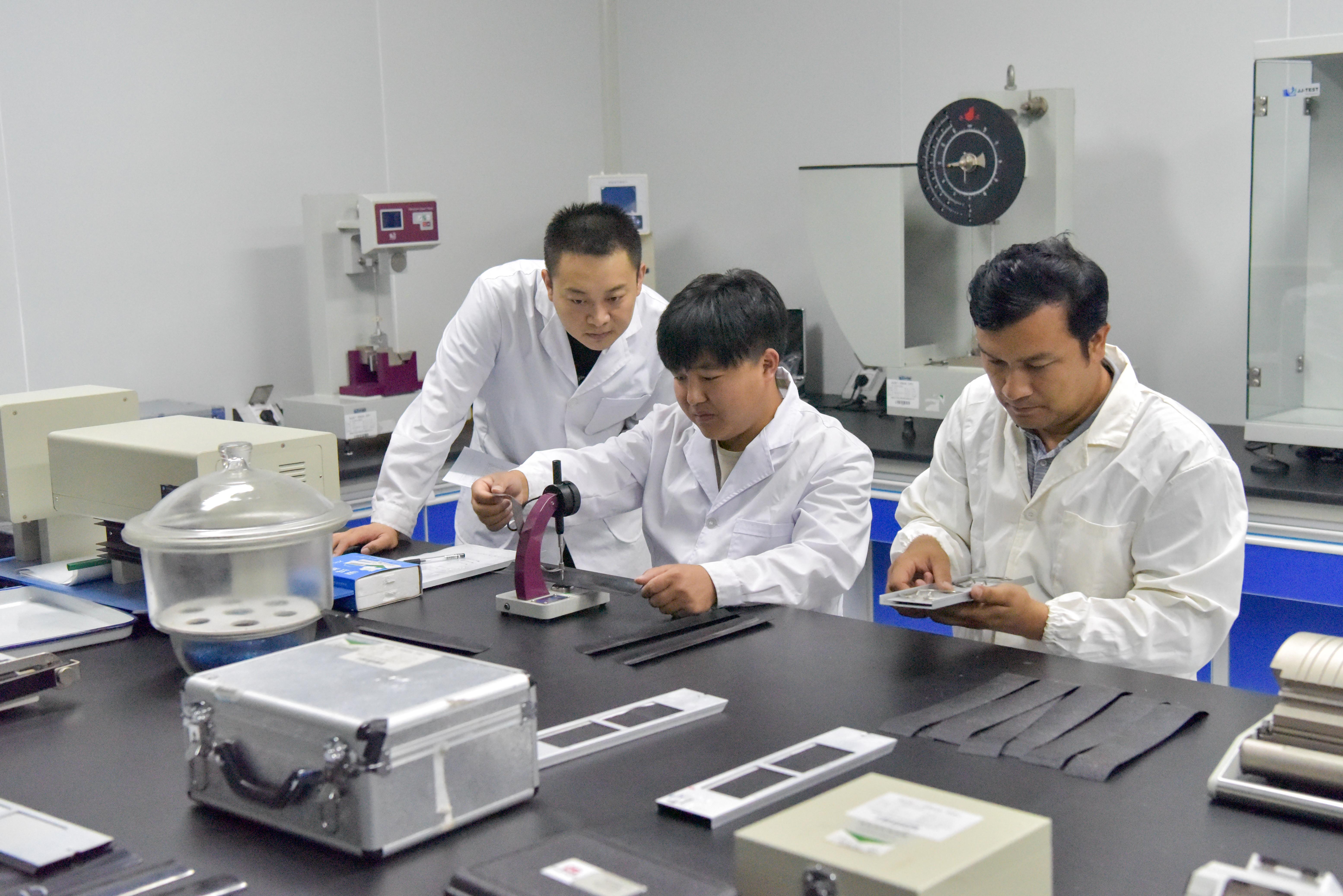 Inspectors conduct sample specification and dimension test at the Xinjiang Turpan Natural Environment Experimental Research Center in Turpan, northwest China's Xinjiang Uygur Autonomous Region, July 17, 2019. (Xinhua/Ding Lei)