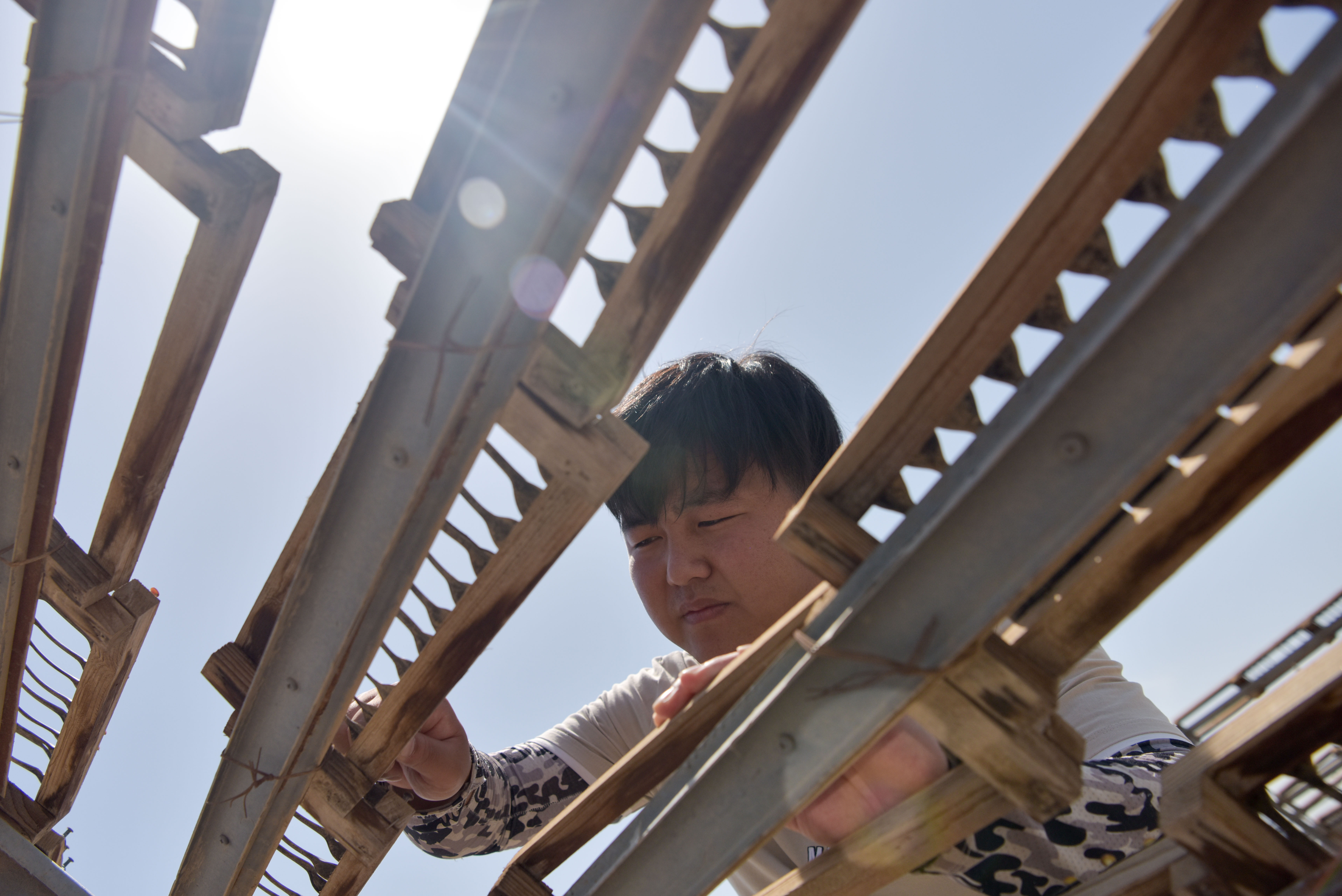 Inspector You Liwu arranges a test chamber simulating internal environment of vehicles on a large patch of land of the Xinjiang Turpan Natural Environment Experimental Research Center in Turpan, northwest China's Xinjiang Uygur Autonomous Region, July 17, 2019.(Xinhua/Ding Lei)