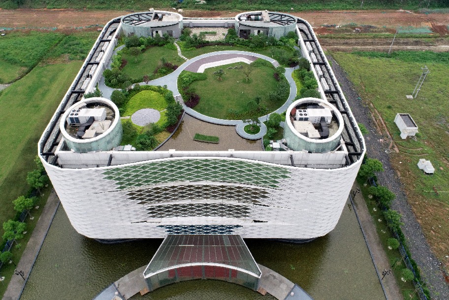 Aerial photo taken on May 28, 2019 shows an exhibition hall on the "sponge city" project in Pingxiang, east China's Jiangxi Province. (Xinhua/Peng Zhaozhi)