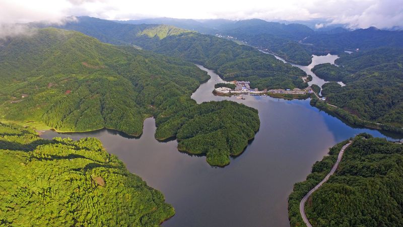 CHONGQING, Aug. 8, 2019 (Xinhua) -- Shades of deep green and blue create a placid picture of the Taiyang Lake in Shizhu Tujia Autonomous County, southwest China's Chongqing Municipality.