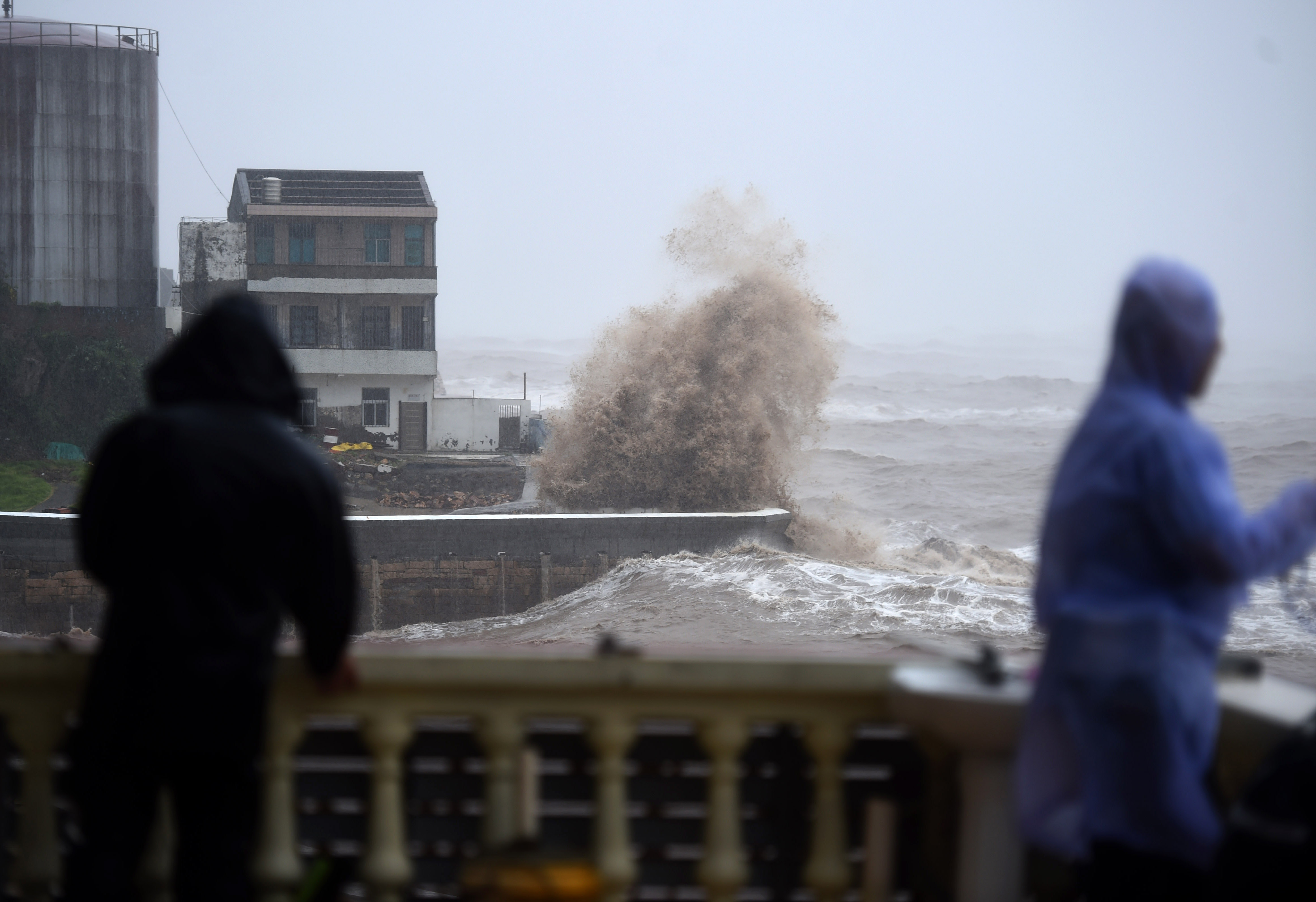 Huge waves beat against the sea shore as Typhoon Lekima approaches in Shitang Township of Wenling City, east China's Zhejiang Province, Aug. 9, 2019. China's National Meteorological Center issued a red alert for Typhoon Lekima Friday morning. (Xinhua/Han Chuanhao)