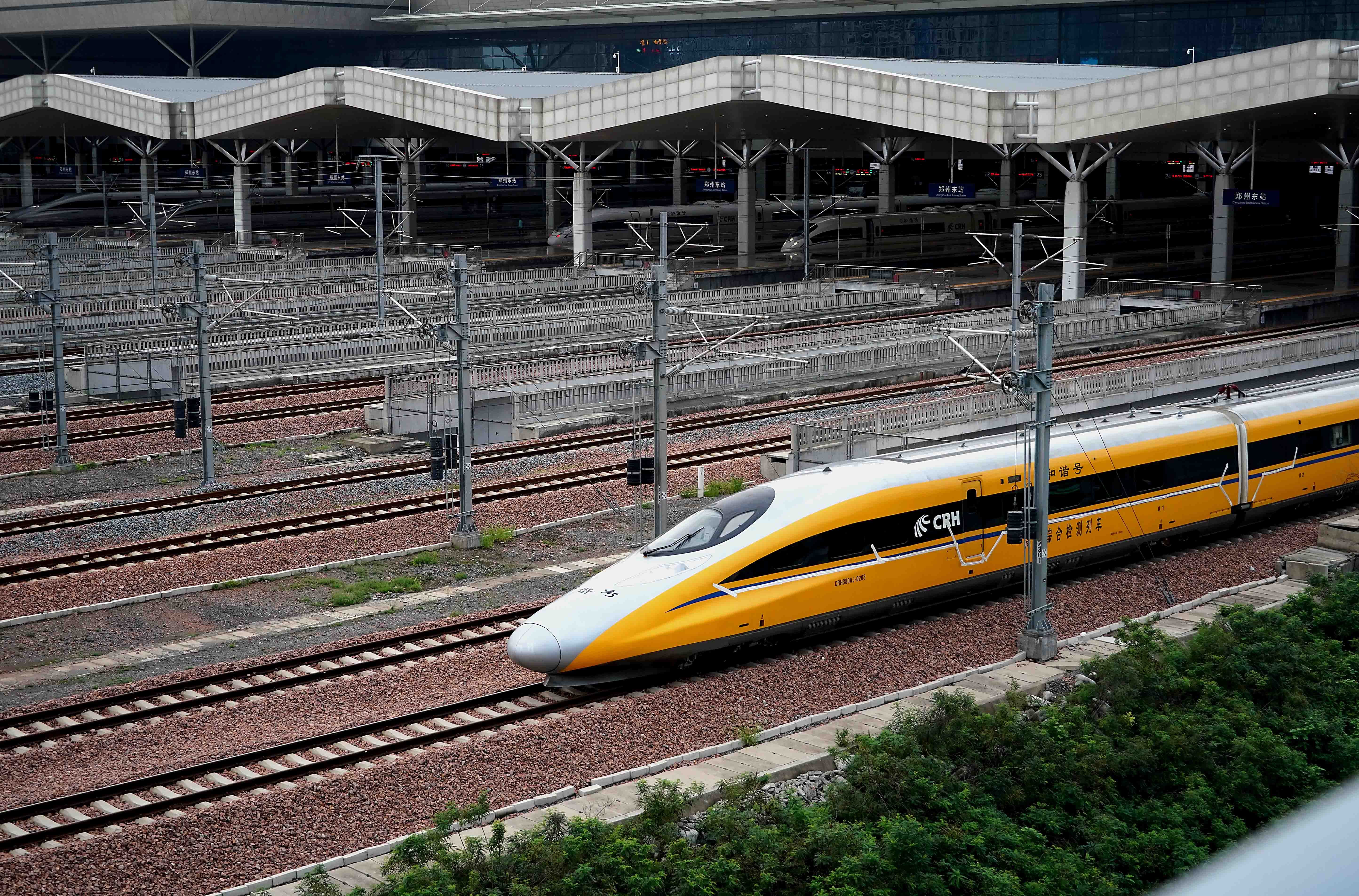A comprehensive inspection train is seen at Zhengzhou East Railway Station in Zhengzhou, central China's Henan Province. (Xinhua/Li An)