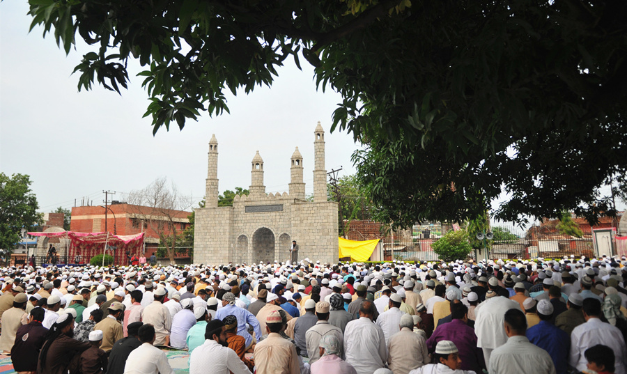 Muslims offer Eid al-Adha prayers in Jammu, Indian-controlled Kashmir on Aug. 12, 2019. (Str/Xinhua)