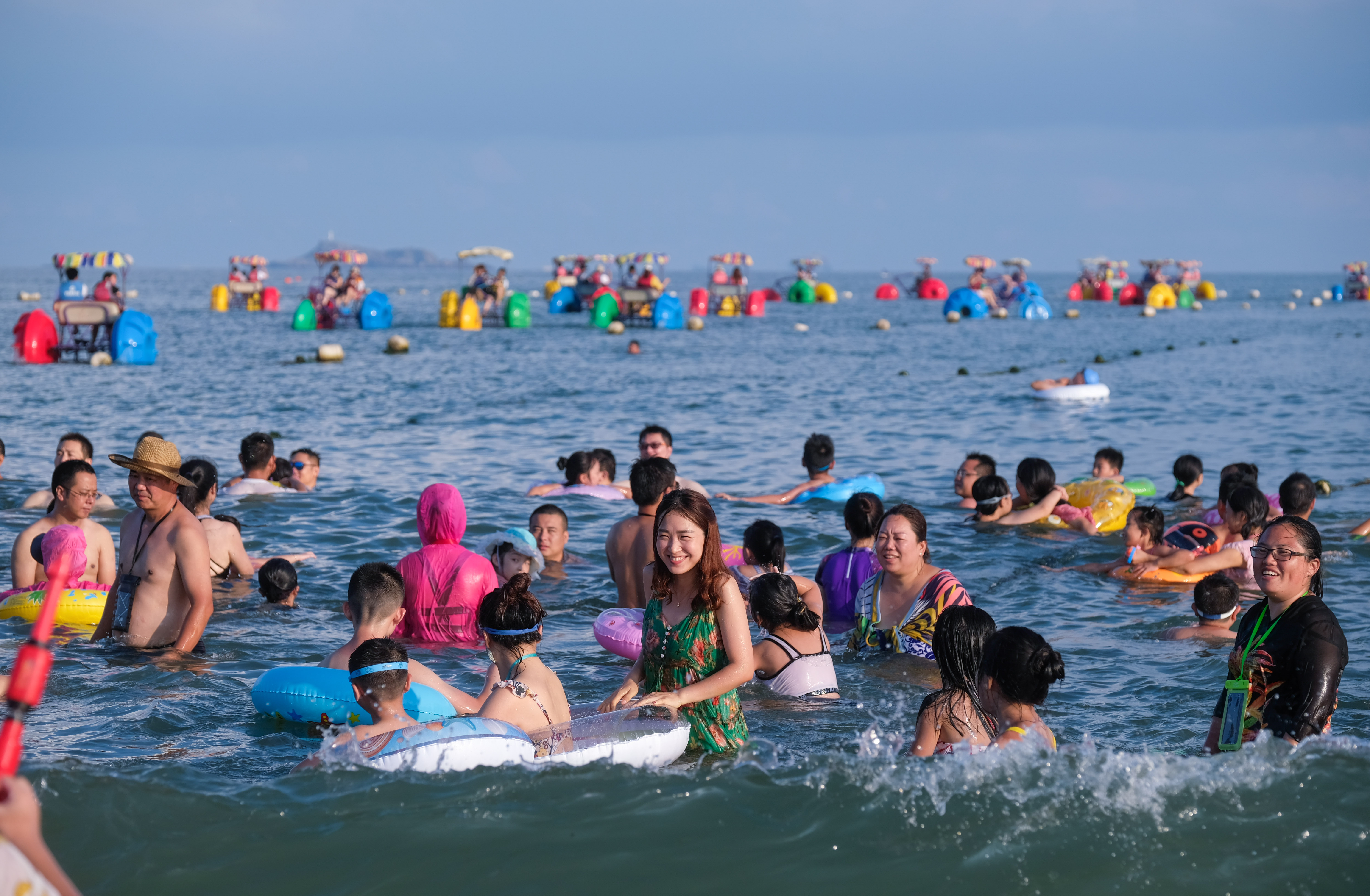 Golden sand beach and rippling green waves brings an increasing number of tourists to Zhujiajian scenic spot in east China's Zhejiang.