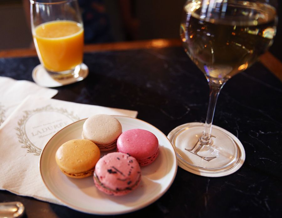 Macarons at a French macaron shop Laduree in Paris, France. (Xinhua/Gao Jing)