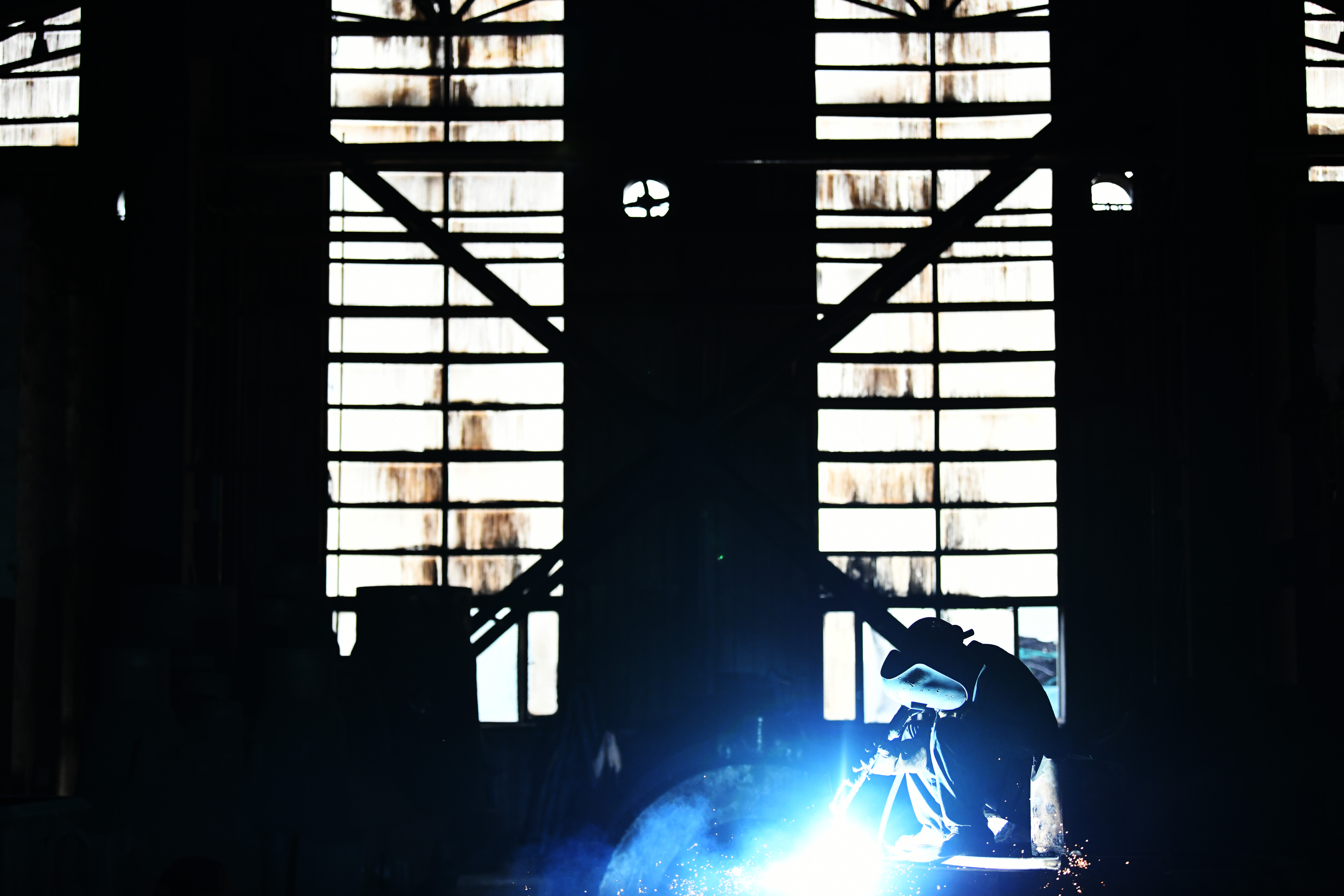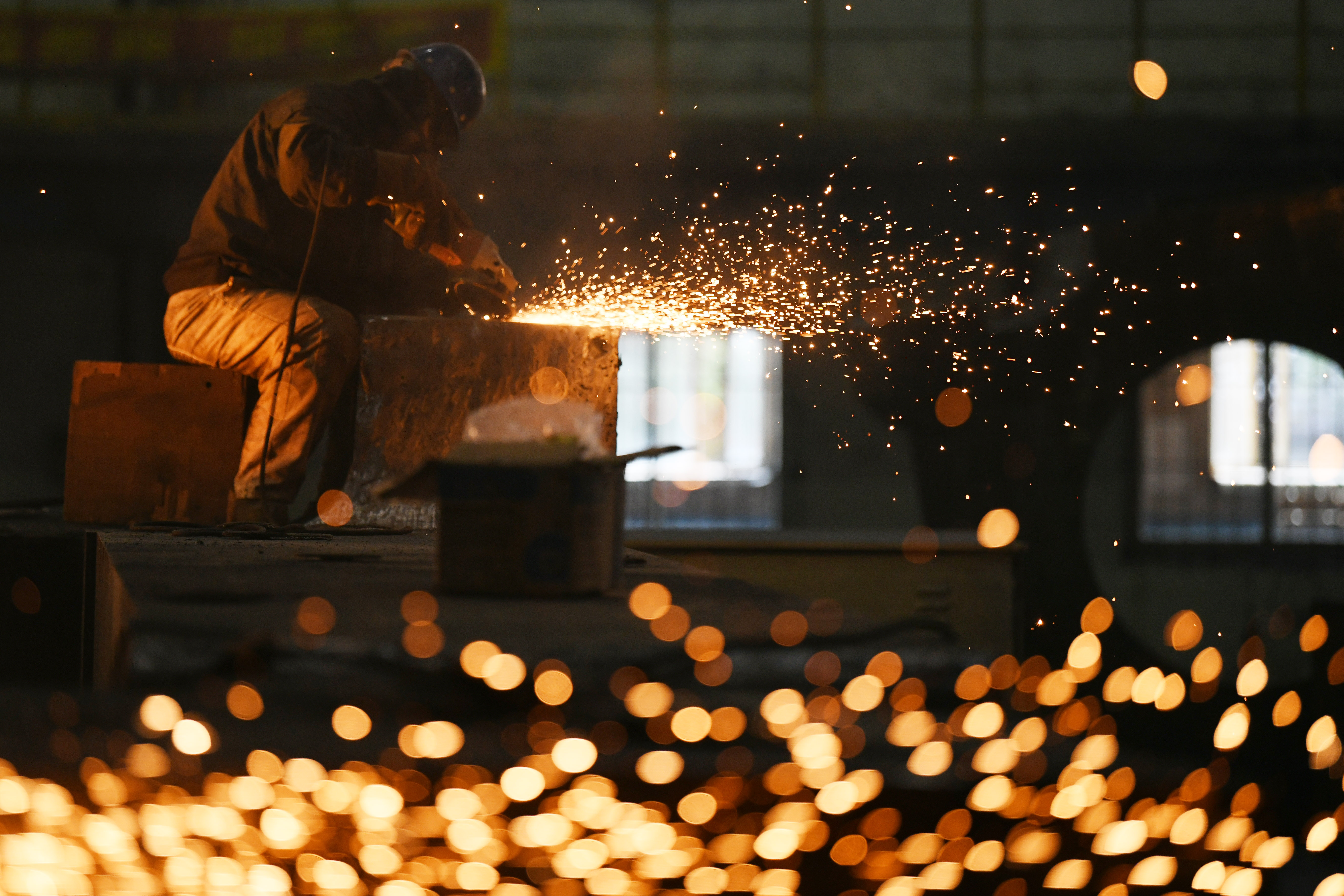 A worker welds components at a factory of Harbin Electric Machinery Company Limited in Harbin, Sept. 2, 2019. (Xinhua/Wang Jianwei)