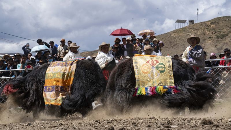 Yaks fight during a bullfighting festival in Zhexia Township, southwest China's Tibet Autonomous Region. (Xinhua/Li Xin)