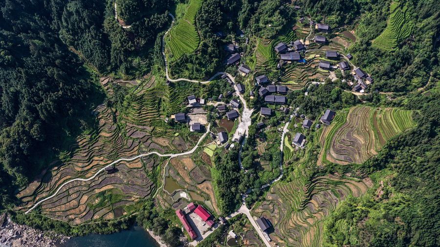 Aerial photo taken on Sept. 11, 2019 shows the autumn scenery of Sirong Township in Rongshui Miao Autonomous County, south China's Guangxi Zhuang Autonomous Region.(Xinhua/Zhang Ailin)