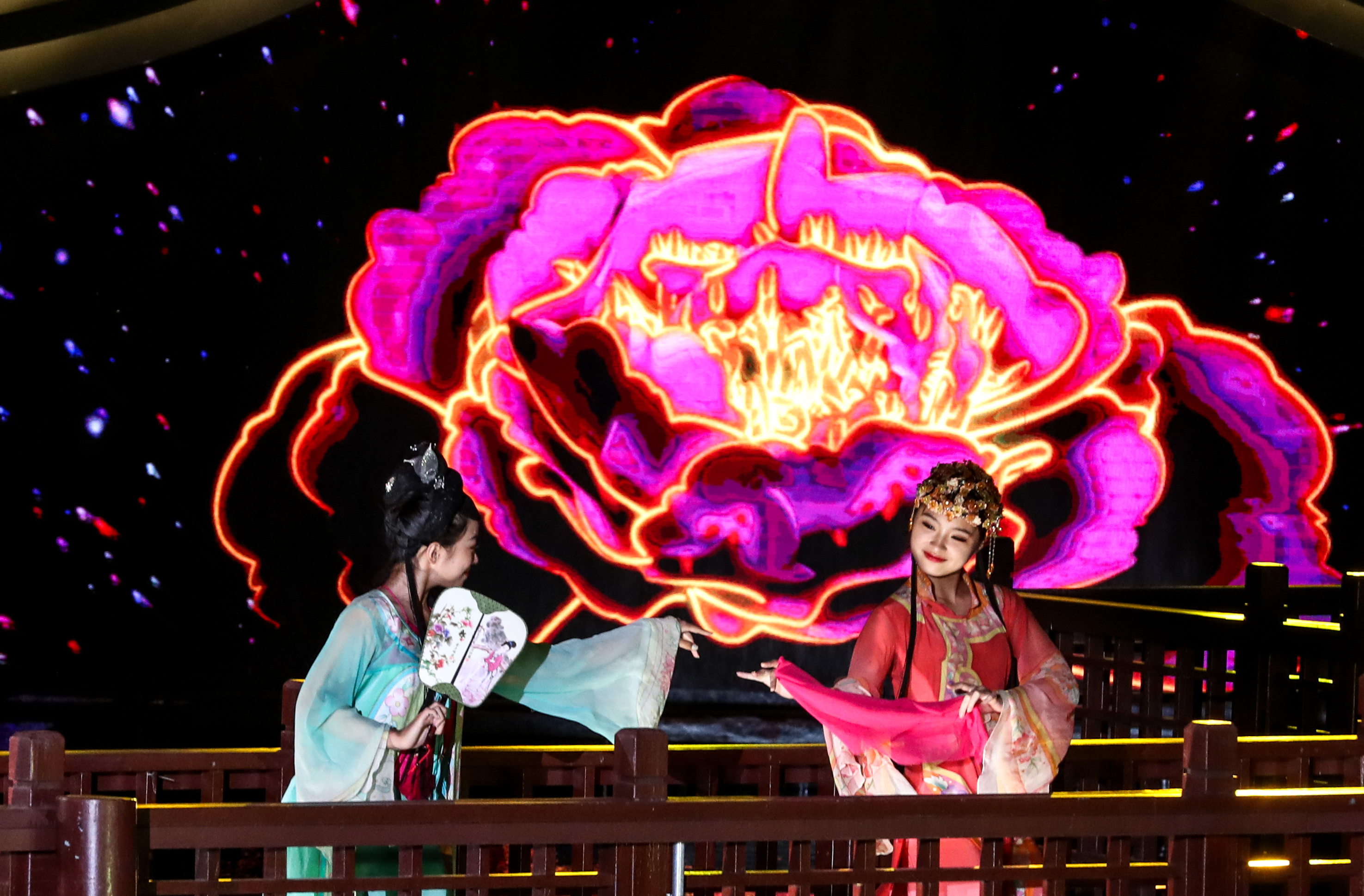 Actresses perform during a lighting ceremony of a lantern fair in Zhouzhuang Township of Kunshan City in east China's Jiangsu Province, Sept. 12, 2019. (Xinhua/Yang Lei)