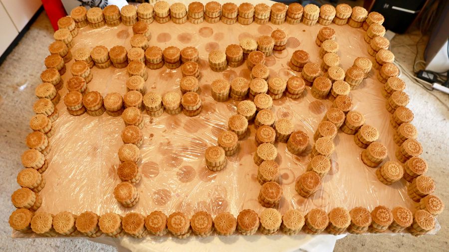 Moon cakes made by local Chinese on Sept. 7, 2019 to celebrate the upcoming Chinese traditional Mid-Autumn Festival, which falls on the 15th day of the eighth month of the Chinese lunar calendar, or Sept. 13 this year, in Canberra, Australia. (Photo by Chu Chen/Xinhua)
