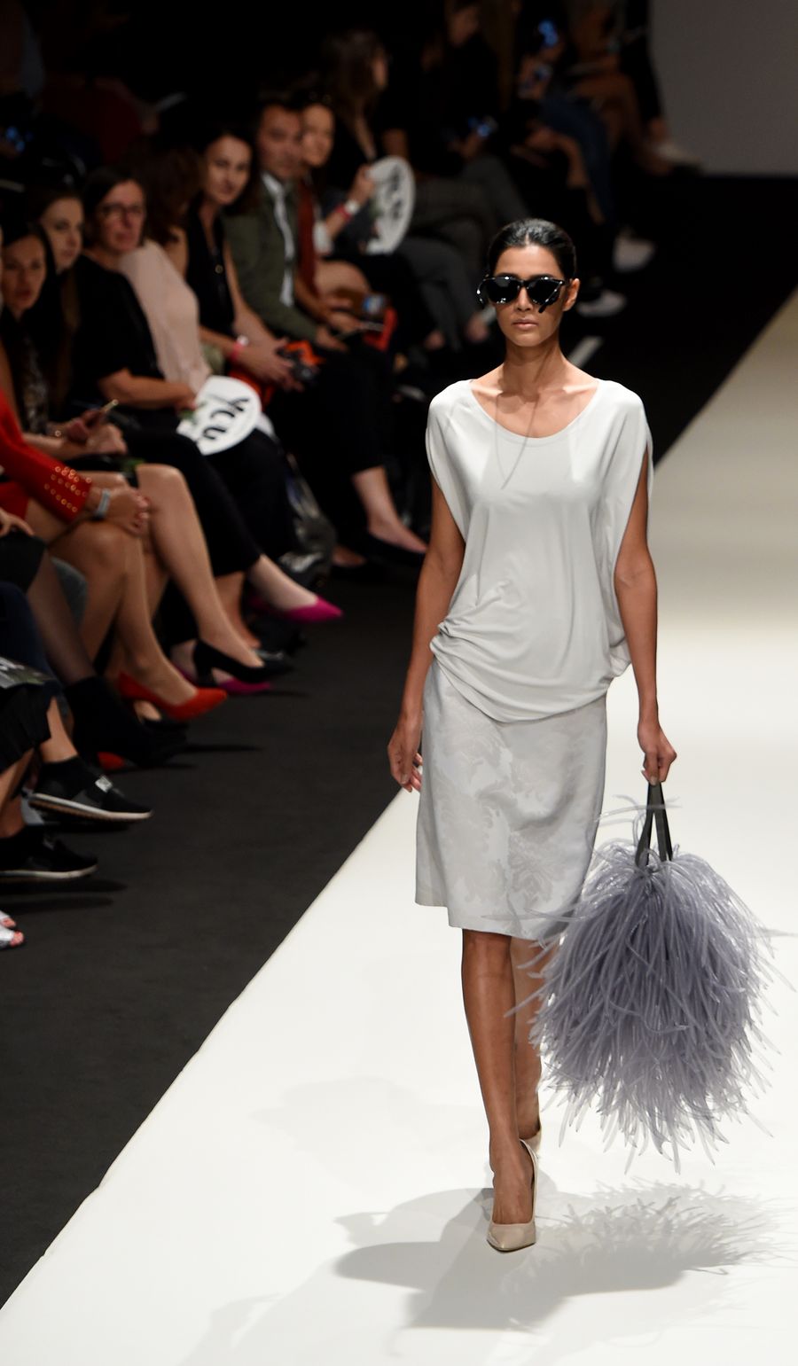 A model presents a creation during Vienna Fashion Week 2019 in Vienna, Austria. (Xinhua/Guo Chen)