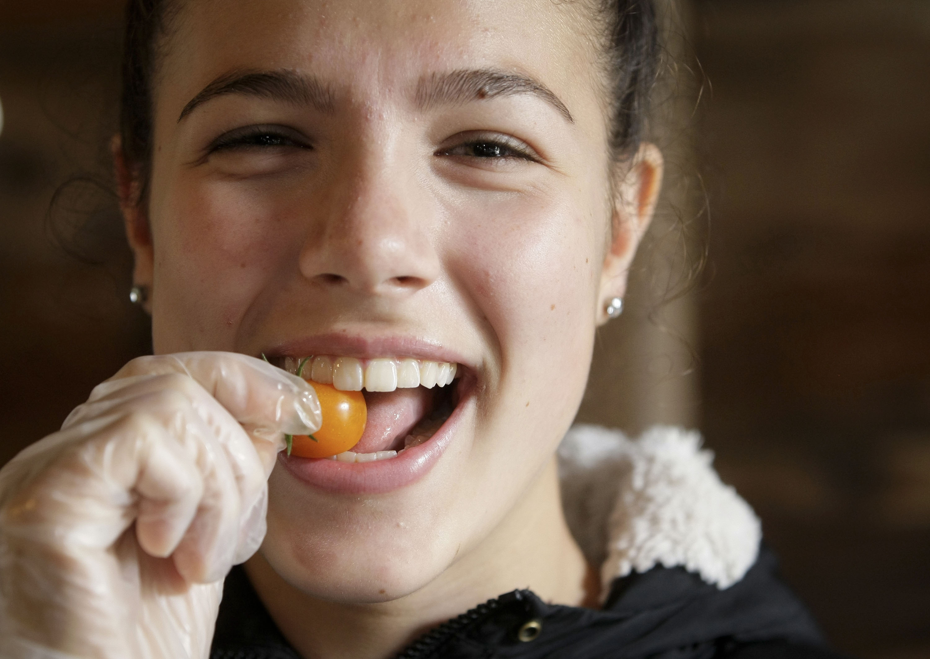 A woman takes a bite of heirloom tomato during the 8th Annual Heirloom Tomato Fest at Earthwise Garden in Delta, Canada, Sept. 14, 2019. The 8th Annual Heirloom Tomato Fest features a variety of certified organic heirloom tomatoes together with heirloom tomato sale, cooking demonstrations, and heirloom tomato growing workshops. (Photo by Liang Sen/Xinhua)