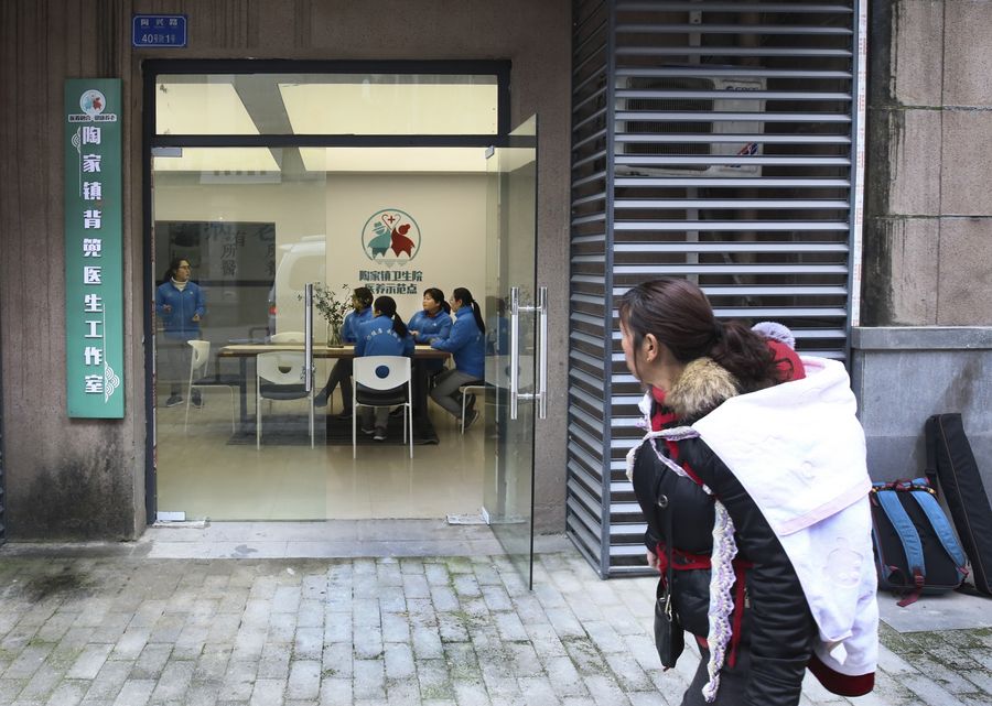 Medical workers discuss at a health center in Taojia Town of Jiulongpo District, southwest China's Chongqing, Feb. 20, 2019. (Xinhua/Lan Hongguang)