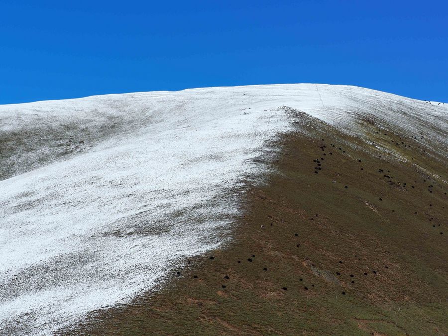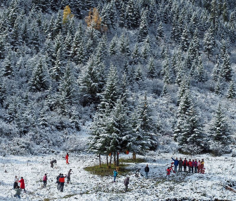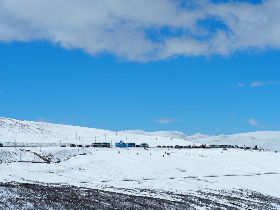 A snowy section of the Sichuan-Tibet highway, Oct. 17, 2019 (Xinhua/Wang Di) ■