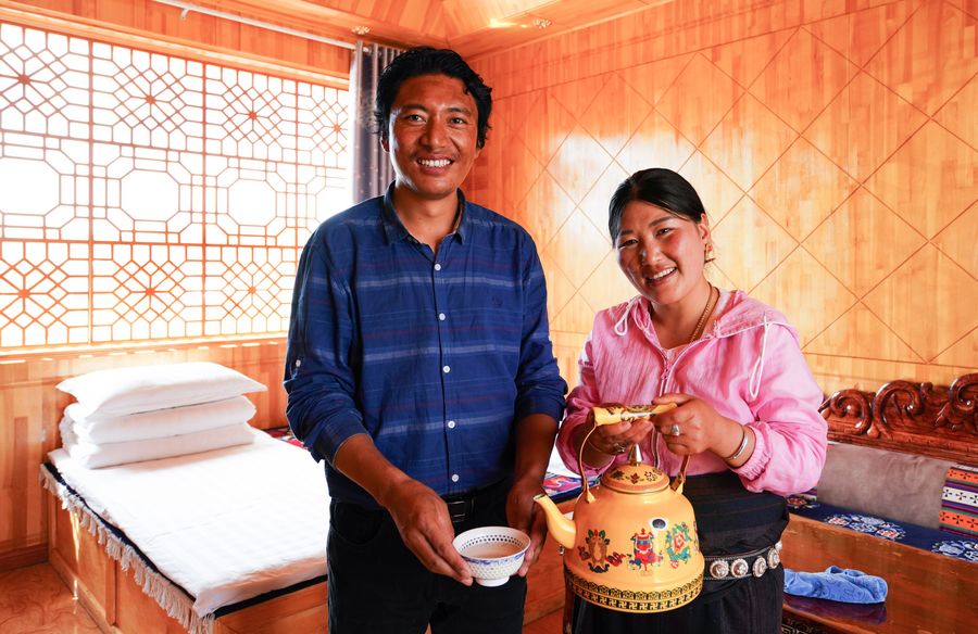 A couple at their farm stay in Gaxiu Village, Gannan Tibetan Autonomous Prefecture of northwest China's Gansu Province, Aug. 27, 2019. (Xinhua/Chen Junqing)