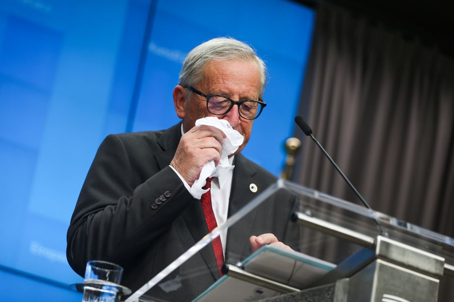 President of the European Commission Jean-Claude Juncker attends a press conference during an EU summit in Brussels, Belgium, on Oct. 17, 2019. (Xinhua/Zheng Huansong)