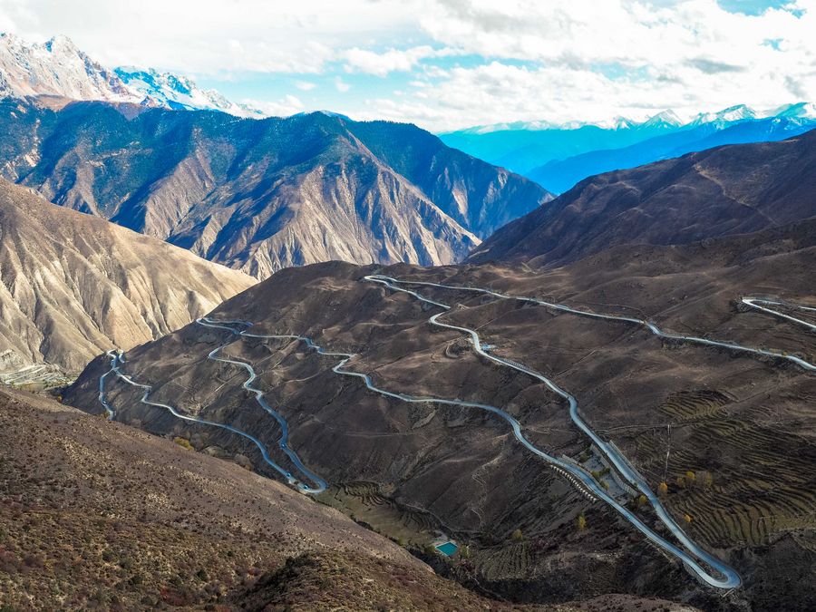 Photo taken on 23 Oct, 2019, shows mountain view of a section of the Sichuan-Tibet Highway. (Xinhua/Wang Di)