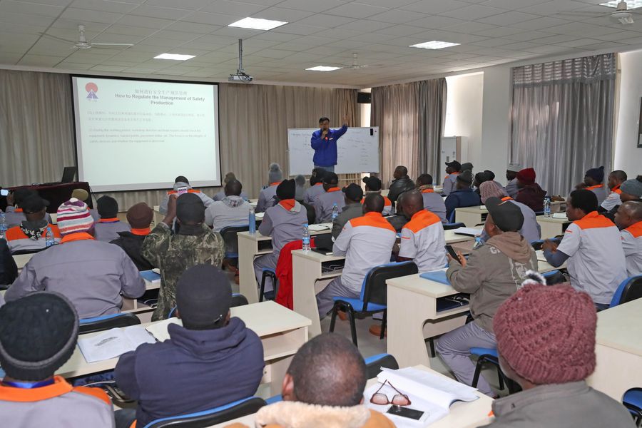 Nigerian engineers attend a training session in a factory of Huaye Group in the city of Anshan, northeast China's Liaoning Province, Oct. 14, 2019. (Xinhua/Yang Qing)